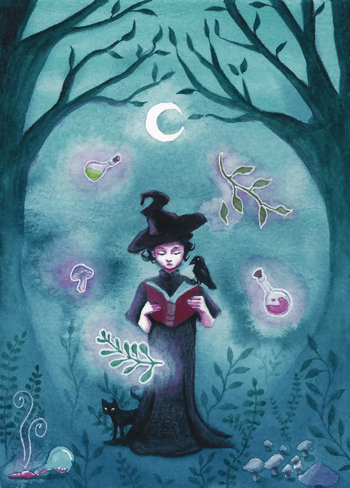 Apprentie sorcière, aquarelle