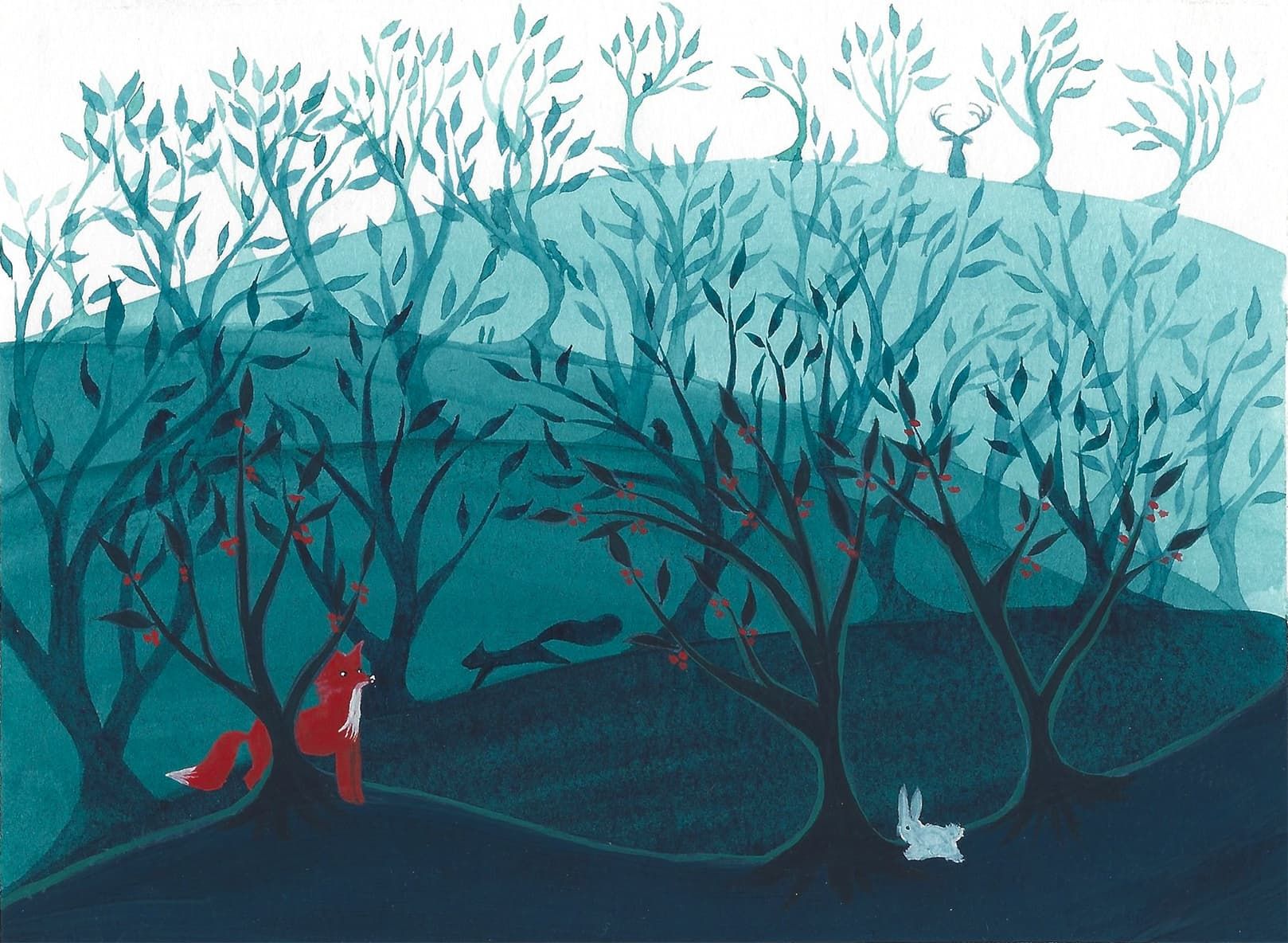 Le Renard, aquarelle et gouache